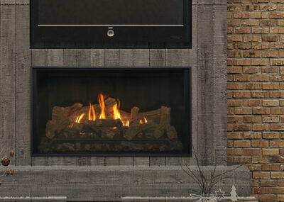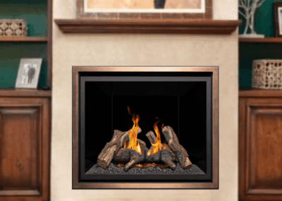 Direct vent gas fireplace that comes in either a log set, or glass media set.