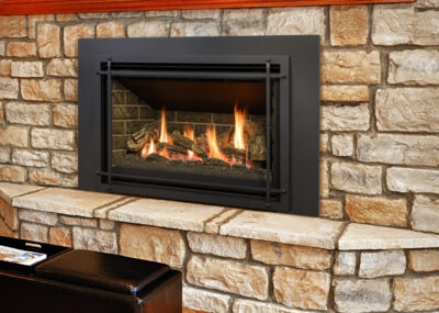 A direct vent gas insert is a natural gas or liquid propane fireplace that is installed into an existing masonry fireplace or factory built wood burning fireplace that uses the existing chimney as a chase to run the venting. The fireplace is a sealed combustion chamber that draws air from outside the home and exhausts the fumes out the chimney cap.