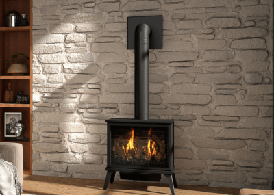 A Gas fireplace is a natural gas or liquid propane fireplace that has a sealed combustion chamber and draws air from outside the home and exhausts the fumes from the fire out the chimney cap creating a clean enjoyable fire. This type of fireplace does not require an existing fireplace or chase to be present, as the pipe can run horizontally out of the house or vertically through the roof as long as clearances are maintained.